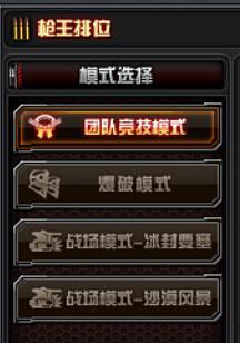 A1、枪王排位包含团队竞技模式(150杀敌数)、爆破模式(5回合)、战场模式(冰封要塞)、战场模式(沙漠风暴),4个模式,排位分数4个模式相互独立。