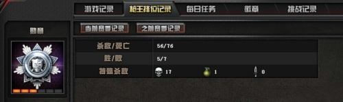 A10、在角色属性中,有枪王排位记录,里面有详细的枪王排位比赛的记录,各模式的胜负、杀敌等详细数据都有。