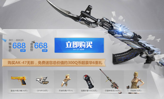 2.开通CFVIP,在本页面购买任意武器可尊享VIP优惠价;开通CFVIP