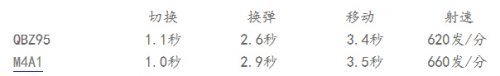 从速度上来说,切换上QBZ95与GP版本的M4A1相当,而换弹速度上则快于它,移动速度较快,但是射速方面较M4A1来说较慢,射速属于中等。