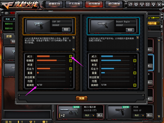 ②、cop 357,只有四发子弹,没错,只有四发,远距离威力有衰减,后坐力较沙漠之鹰较大,其实整体还是很小,可以轻松上手。