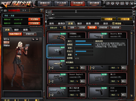 商城道具,定额GP永久,造型设计出色,外观对比传统手枪华丽至极,良好的枪械属性,配以出众的操作手法,相信很快就会成为狙神们的新宠儿,我们拭目以待,一款全新GP神器的诞生。