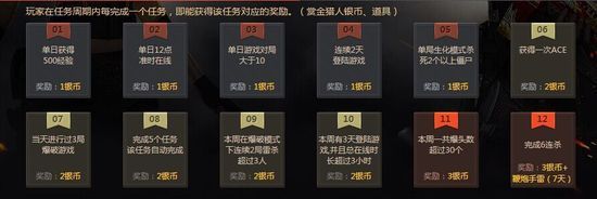 CF活动火线赏金令完成任务 2015-02-04 09:02 新浪游戏 0 CF赏金令活动开启啦,小伙伴赶紧去领赏金令任务吧!一起来看看CF2.0悬赏令又给我们带来什么好礼吧! 点击进入活动网址 活动时间:2015年1月28日-2015年2月11日 领取时间:2015年1月28日-2015年2月11日 一、我的任务 二、奖励兑换