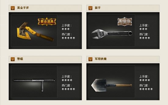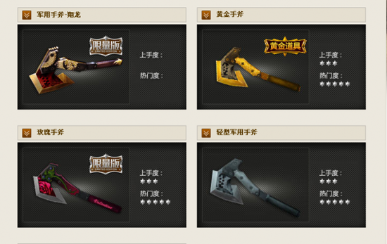 不得不说,劳动人民的智慧是无穷的,在生产中发明的各类工具,已经发展成为CF中的高端武器。例如这把手斧,可以成为近战武器中的AK,即便你是防弹头盔,也打得你头破血流,哀鸿遍野。