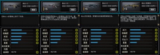 与M4家族的普通M4、M4A1-A、M4A1-C对比,发现M4A1-S比普通M4在精准度 和其他一些属性都相同,载弹量要比普通M4多5发;与M4A1-A对比发现迷彩和M4A1-A的属性完全相同,但是迷彩是在M4A1-A上改进的,除去这 些属性迷彩在换单和切枪的速度上要比M4A1-A快;与M4A1-C对比迷彩的属性也和它相同,除去这些属性迷彩在换单和切枪的速度上也比M4A1-C 快。