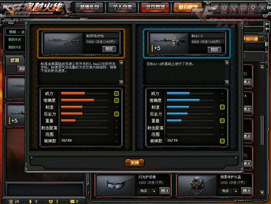 CF中M6枪身重量为2.7KG,全长635MM,弹夹容量:30/60上手度:★★★★★热门度:★★★★售价:180天/7000CF点