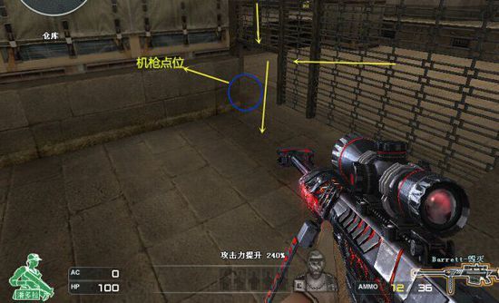 这个位置在短时间不好上去,要玩家沉着冷静,在上面可以俯视整个场地的僵尸,配备一把大炮,对僵尸点名射击,支援其他几个防点的队友,但容易被终结者直接突破。