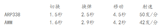 从速度上来说,尽管他有一个拉开折叠枪托的动作,但是实际上ARP338的切换速度并不慢,与GP版AWM相比不论是切换还是换弹的速度都快于AWM,但是重量较大,移动速度比AWM来说较慢,射速则快于AWM。