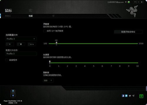 4. 尽可能使用低灵敏度,最好能配上低DPI的鼠标。这是由于手指在点击鼠标的时候,手指对鼠标的冲击可能会带来轻微的鼠标位移,如果DPI高或者灵敏高的话,可能会带来准星的位移造成失准,这里我们以雷蛇鼠标为例。