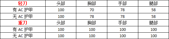 由于轻刀的攻击判定大,而且一旦爆头无论是否有AC都可以一击必杀,所以轻刀爆头的战术依旧 吃香。重刀应该算是铁锤的重头戏,独特的二段攻击让铁锤的进攻多种多样,既可以直接用第一段重砍直接秒人,也可以故意打空第一段攻击,诱骗敌人出刀,然后 利用第二段攻击将其反杀。超长时间的攻击判定可以实现出刀后,利用身法左右移动,逼近对手造成击杀。