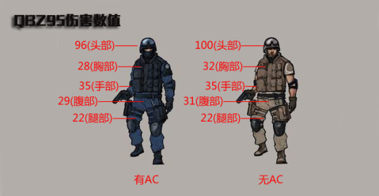 QBZ95的威力介于AK47和M4A1之间,威力比M4A1大,比AK47小。穿透能力和AK相似,伤害衰减非常多。