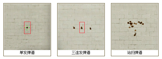 这把枪的弹道是非常集中的,从单点来看,位于一个弹孔上。而三连发的弹道也是很稳定,基本位于一个弹孔上。而扫射弹道是左右摆动的,需要控制一下准心。