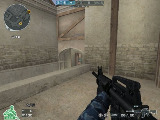 4、下面说说A大吧!这个区域基本上是潜伏保卫者们必争之地,除非几轮下来抢不下来的情况才会 收敛。新图的改变在于增设了一些新的东西,不仅潜伏者方向增加了几个麻包袋,保卫者除了麻包袋,还增加了一堵木墙!这虚虚实实的,更增加了游戏的有趣性。 除此这外,潜伏者们进攻的时候还新添了一个屋檐,保卫者送了个花园。这是谁都别亏着的节奏啊!但是保卫者要注意的是,当你站在木墙后的时候,你的头是可以 被看到的,而你却看不到潜伏者,结果。。。你懂得。