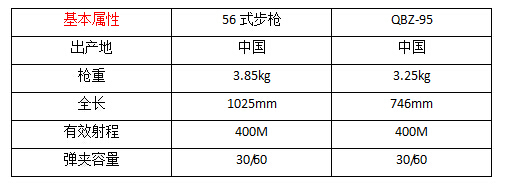 综合对比这两把国产武器,两者的属性差异还是比较大的,总体来说类似于AK-47与M4A1的 对比。56式步枪威力大,但是弹道稳定性差;QBZ-95的精度不错,但是威力略低。两种武器的打法也各有不同,56式步枪适合中近距离的战斗,QBZ- 95适合远距离战斗。俗话说没有最强的武器,只有最强的玩家。选一把适合你的武器,就是你心目中最强的国产武器!