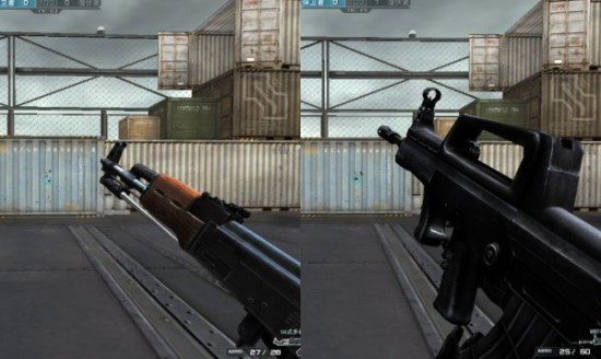 从游戏内的属性上看,QBZ-95由于使用了大量工程塑料,所以整体重量较轻;特殊的无托结构 步枪设计让它整体看起来更为小巧;在弹夹设计上两者相同。在价格上,56式步枪只需2万GP点即可入手,而QBZ-95除了需要2万4的GP点外还必须是 VIP会员有资格购买,对于单纯想要购买武器的玩家来说十分不方便。小编当年为了买QBZ-95还是咬咬牙开了一个月的会员……