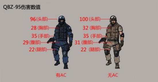 从中近距离的威力测试中我们看出56式在威力上超出QBZ-95不少。然而在远距离的威力上,两把枪都出现不能一枪爆头的现象。再就是两者的穿通力都不怎么强,面对AC伤害衰减还是非常明显的。