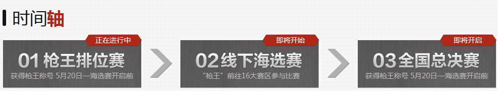 在枪王排位赛中获得过“枪王”称号的玩家可以参与《枪王争霸赛》,全国将分16个赛区进行线下海选赛,符合“枪王”资格玩家可以自行前往比赛现场进行报名参赛,与本赛区众多“枪王”一争高下!