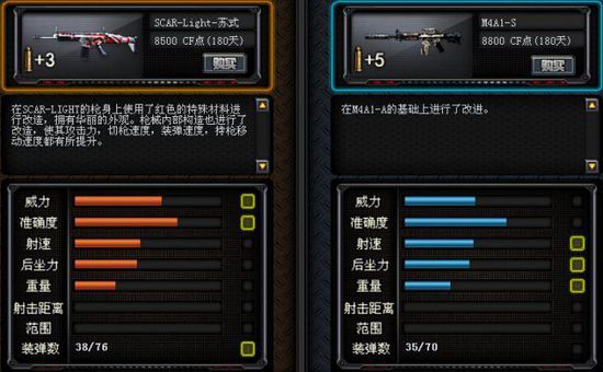 SCAR-Light-苏式与M4A1-S相比,在威力和精准度方面SCAR-Light-苏式高于M4A1-S,在射速方面SCAR-Light-苏式比M4A1-S慢一些,而M4A1-S的后坐力和重量都要比SCAR-Light-苏式高。