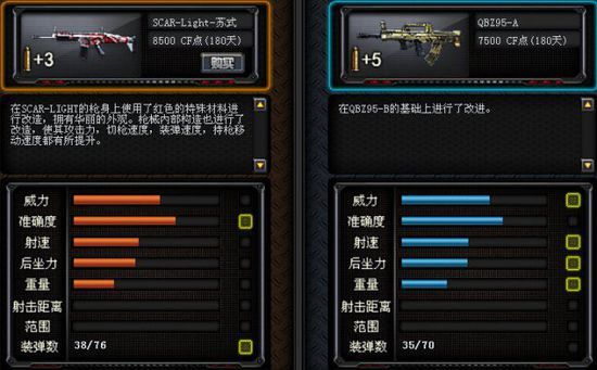 SCAR-Light-苏式与QBZ95-A相比,SCAR-Light-苏式在精准度上比QBZ95要高,威力和射速要比QBZ95-A差,但是后座和重量都比QBZ95-A小。SCAR-Light-苏式稳定性要比QBZ95-A好很多。