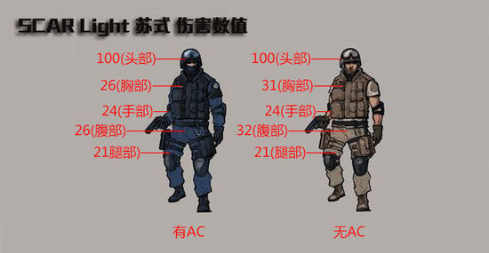 这把枪的伤害还算不错的,比AK47低一点,比M4A1高一些。在由AC的情况下也可以做到一枪爆头,而且精准度高非常适合点射。