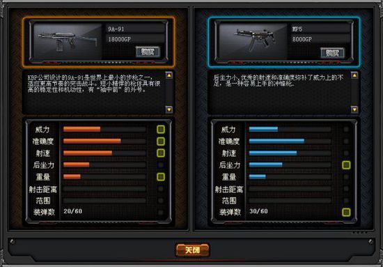 与老牌冲锋枪MP5比,9A-91的属性几乎是压制性的,几乎所有属性都领先于MP5。不过重量上9A-91要略重一些,机动性不如MP5。