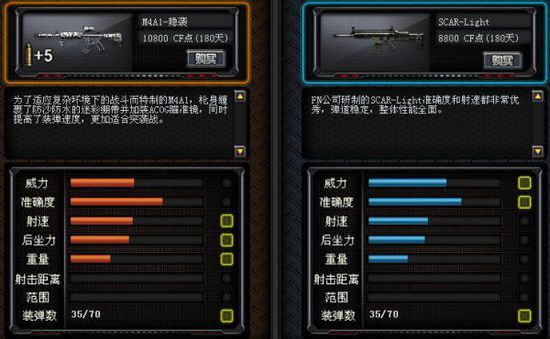 M4A1-影袭与M4A1-S相比,在威力和精准度上M4A1-影袭比SCAR-Light要低,在射速上M4A1-影袭比CSAR-Light要高,在后坐力和重量上M4A1-影袭比M14EBR要高。