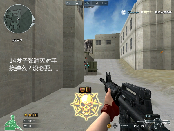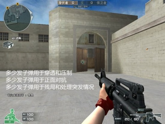 1、整体弹药的合理分配:CF中携弹量是有限的,在竞技模式下,即便是装备有弹夹道具的玩家,携弹量也仍然有限,有限的子弹合理的分配给不同的通途,不仅仅可以提高子弹的利用率,同时又能大大提高玩家的持续作战能力。