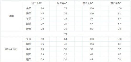 清刚伤害数据=碳合金短刀