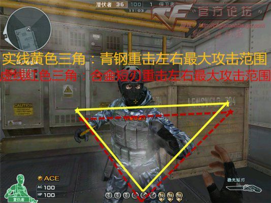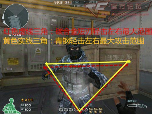 清刚和碳合金短刀的伤害相同,那么攻击范围是否相同呢?大家不用纠结了,让我告诉你吧!清刚和短刀的近身攻击范围同样是相同的;下图为轻击左右最大攻击范围。