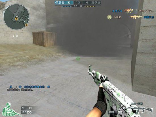 烟雾弹从手里扔出去到生效大概是1.5-2秒。持续时间25秒,落点的效果最浓,周边效果递减。(这里说的持续时间是从生效到烟雾完全散尽。)由此可见烟雾是一个阻碍视野的道具,持续时间较久。但是烟雾什么时候扔?往哪扔?就成了一个小问题,下面通过截图说明一下。
