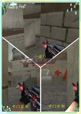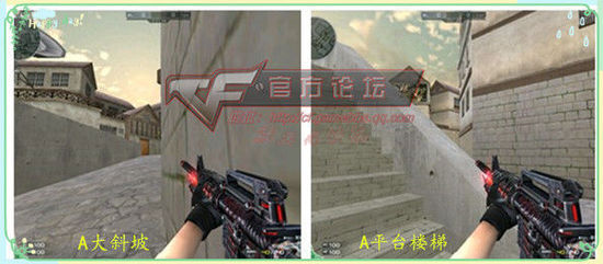 A大道在潜伏者进攻时到达A盲点位置之后要注意的地方很多,火车后、三角箱、小道一柱二柱、A狗,小道楼梯……太多位置。所以在进攻的人数上必须多 人协同,否则就是送人头。这时候战神位的机会就来了,第一个位置就是大家通常都熟悉的A平台楼梯,虽然这个点位大家都会注意,但是利用楼梯作为掩体上下移 动卡敌人爆头线,很容易击杀多个敌人。