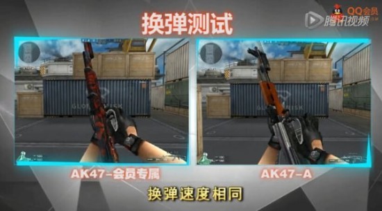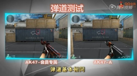 通过对比我们发现,这把AK47-QQ会员与一般的AK47-A别无二致,移动速度和换弹速度相同,两者的弹道也几乎相同。硬要说出由什么特殊大概也就是AK47-QQ会员在右上角的弹道更为密集,手感上会有所变化。