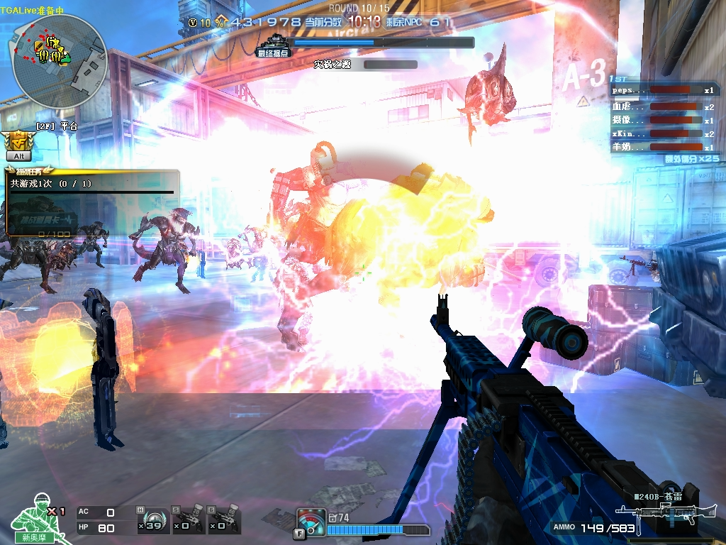 专为挑战模式设计的M240B-苍雷,在挑战模式中将装载强力雷电子弹,将对生化怪物造成巨大的伤害,并且随着战斗会增加能量,能量充满时,右键可发射毁灭性的榴弹打击。