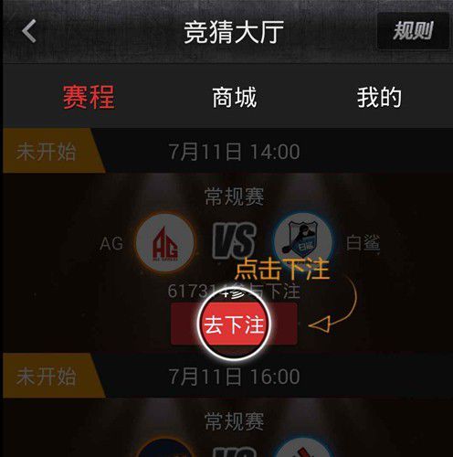 2、 支持你喜欢的队伍并下注,支持的队伍获胜后即可获得巨额的积分奖励