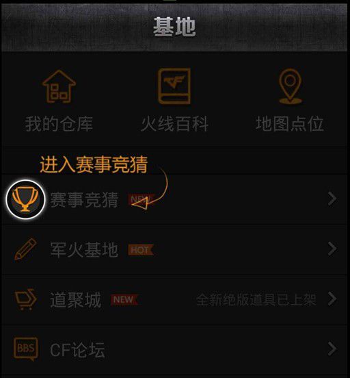 1、 进入《掌上穿越火线》,从“基地入口”进入竞猜功能