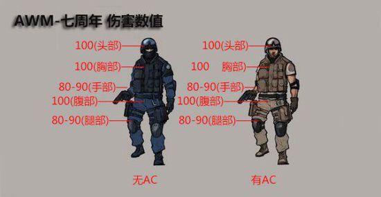 AWM-七周年与AWM-A相比,AWM-七周年和AWM-A在威力和精准度上基本相同,在后坐力上AWM-七周年更大,威力基本相同。