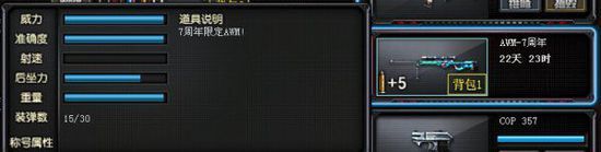 AWM-七周年这把枪的外观整体感觉还不错,在枪身上海装备有支架,增加了前支架吗,让枪械更加具有稳定性。另外这把枪械的威力和属性和AWM以及AWM-A相似。不过枪身比较重,持枪行走速度比较慢。 优点和缺点