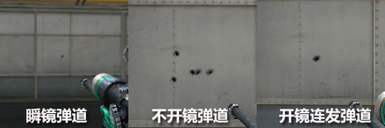 上图为的AWM-七周年弹道图,分别是不开镜状态、开镜状态和瞬狙弹道。