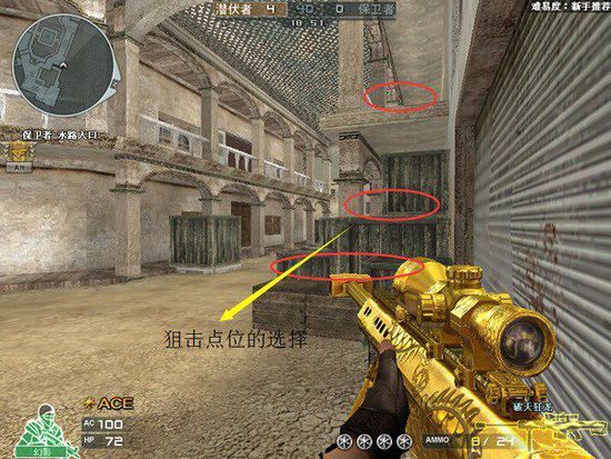 由于破天狂龙这把狙击具有移动速度慢,切枪速度慢的特点,所以在选择狙击点位方面要特别的注意要选择后点狙击来保证自身的安全性,比如在打沙漠TD的时候你完全可以选择在垃圾箱的位置狙击主道而不必去打前点狙。