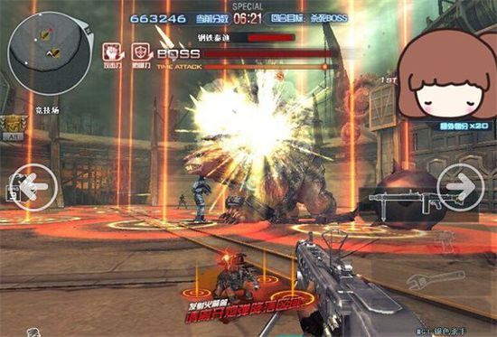 在开局的时候,玩家们需要保持高度的警惕性,只要频幕中一出现资金的名字,就要快速的按下滑翔,这样这样才能降低被炮弹打中后的伤害。另外在钢铁泰迪每次发射密集导弹之后,玩家们可以躲在地上没有被红圈圈出的位置。