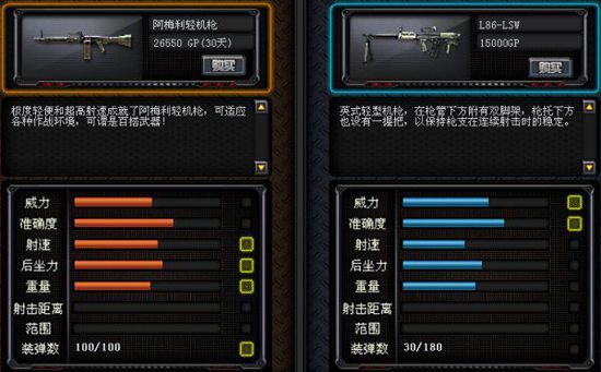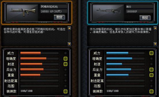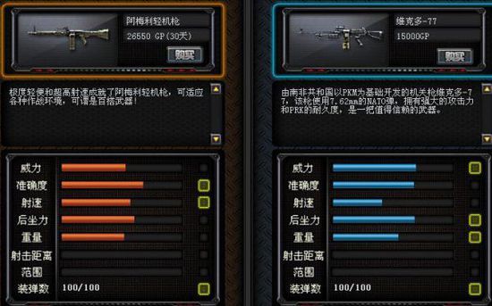 与维克多-77相比,阿梅利轻机枪在威力上要低一点,不过阿梅利轻机枪的精准度和射速更高。维克多-77的后坐力和重量更大,是重型机枪。