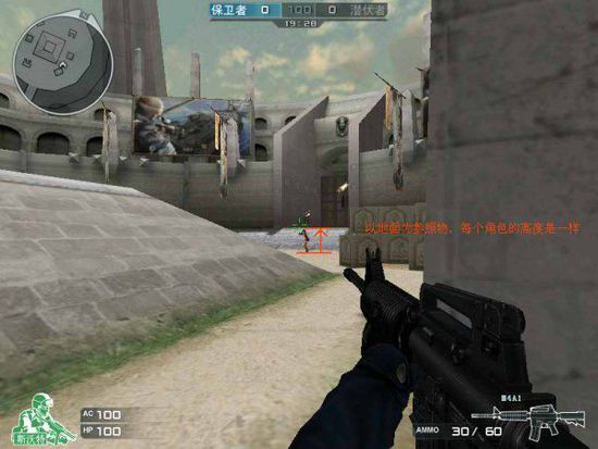 这时候我们将参照的目标从运输船中间的横线变成地面,不管对方在什么地方出现,CF中人物的高度就那么高,我们需要以地面为参照物,逐步去熟悉人头 相对于地面的高度。这个阶段与初级阶段瞄准爆头线速成不一样,需要一定的时间的磨练,最终的结果就是你能够在大脑中想象出,在某个距离,相对于那里的地 面,人头的高度大概是什么位置。
