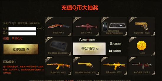 同时在预售活动页面进行Q币充值可以参与抽奖资格,黄金AK、黄金M4、还有极品的鼠标键盘都作为奖品上架。