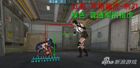 指虎系列的攻击距离按常规来说大致和小刀无差,实在是惨不忍睹,但军用指虎-刺刀的攻击距离却远远的大于普通指虎。