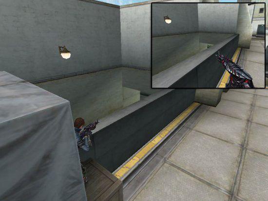 第二种,在墙的拐角处,这个点位是比较猥琐的一个点位,也是潜伏者经常疏忽的点位,猥琐在这里经常会有出其不意的效果。