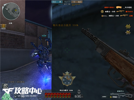 极快的射击速度压制生化幽灵,枪身又轻移动速度也非常快,对准生化幽灵不停的突突突,游走在地图周围,充足的弹药让使用波波沙41的人各种连杀,最后变成幽灵猎手屠杀生化幽灵。