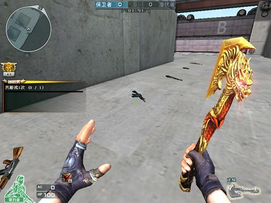 再来看看保卫者左侧,左侧的话有三款武器是玩家必争的,AWM,AUG和AK47。AK47和AUG通常是玩家中路对枪标配武器,前者威力大,后者2倍镜下的准度非常高,所以深受玩家的喜爱。