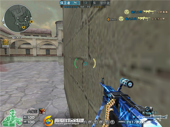 喷上后,躲在箱根处。在这里,大家可能会问,哪有人那么傻?我阴恻恻一笑,在高度紧张的爆破模式中,任何一个可疑的物品都可能成为你的目标,况且还是高仿真的人形喷图!你去当个潜伏者走一次B仓就知道那种蛋疼的感觉了。 喷上喷图后我们有两种方式守卫,第一种是躲在箱根处,待敌方从B水进入B仓发现“敌人”疯狂扫射的,出去开枪打他个措手不及。
