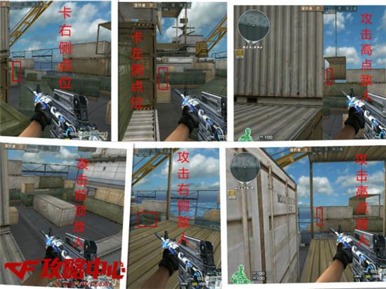 在 铁皮箱高点处时,可以利用铁皮箱做掩体攻击斜对角处的敌人,还可以时不时的探出身子攻击正前方处的敌人。当队友前顶压家时,可以在铁皮箱前攻击对方家前箱 子处附近的敌人。当敌人前顶压家时,可以在铁皮箱处袭击前顶到自己家前箱子处的敌人。当敌人不断从管道偷袭时,可以在大坑箱子处卡点来等待前来偷袭的敌 人。