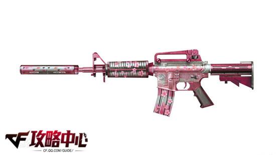 M4A1-樱:M4A1的珍藏加强版,拥有35发弹夹容量以及战术消音器,美丽的樱花为这把枪披上神秘的东方战袍。